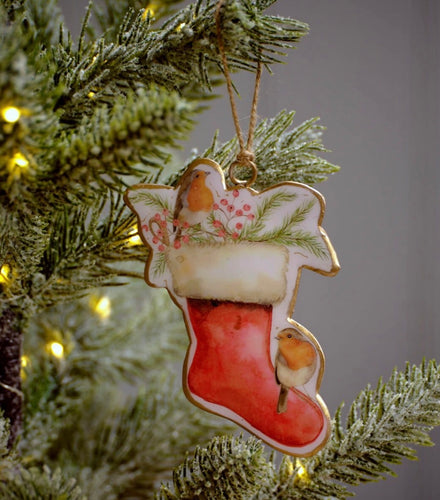 Metal Christmas Hanging Decoration Robins And Stocking By Richard Lang