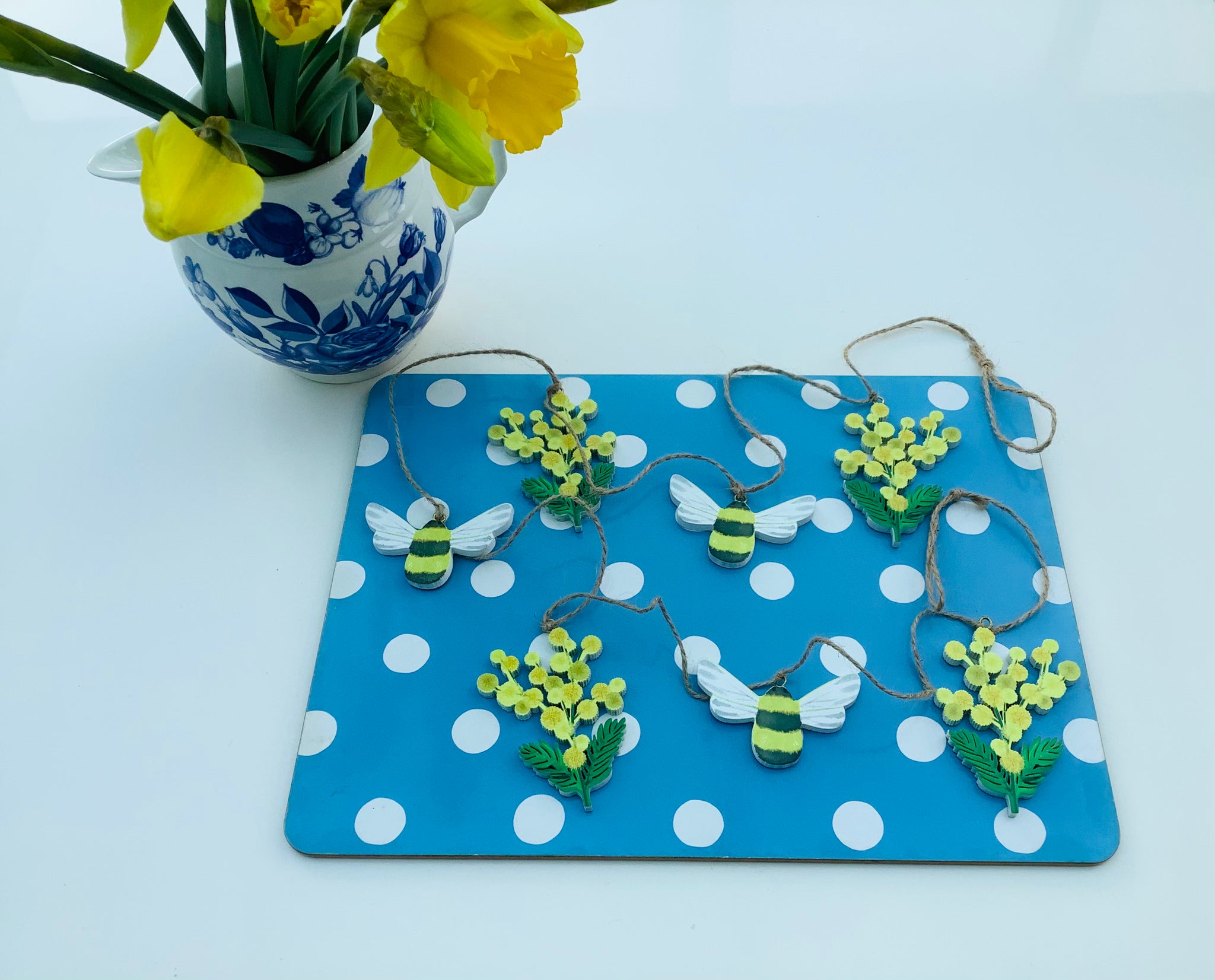 Cute garland in bright colours. Great addition to your Spring decor.